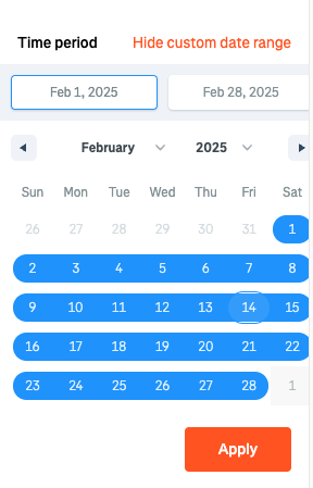 After selecting an edge, the panel will show information about trips and people using that segment. You can filter by trip purpose and switch between bicycle and pedestrian activity. Use the date picker to choose a time period or apply a custom date range to narrow your analysis.